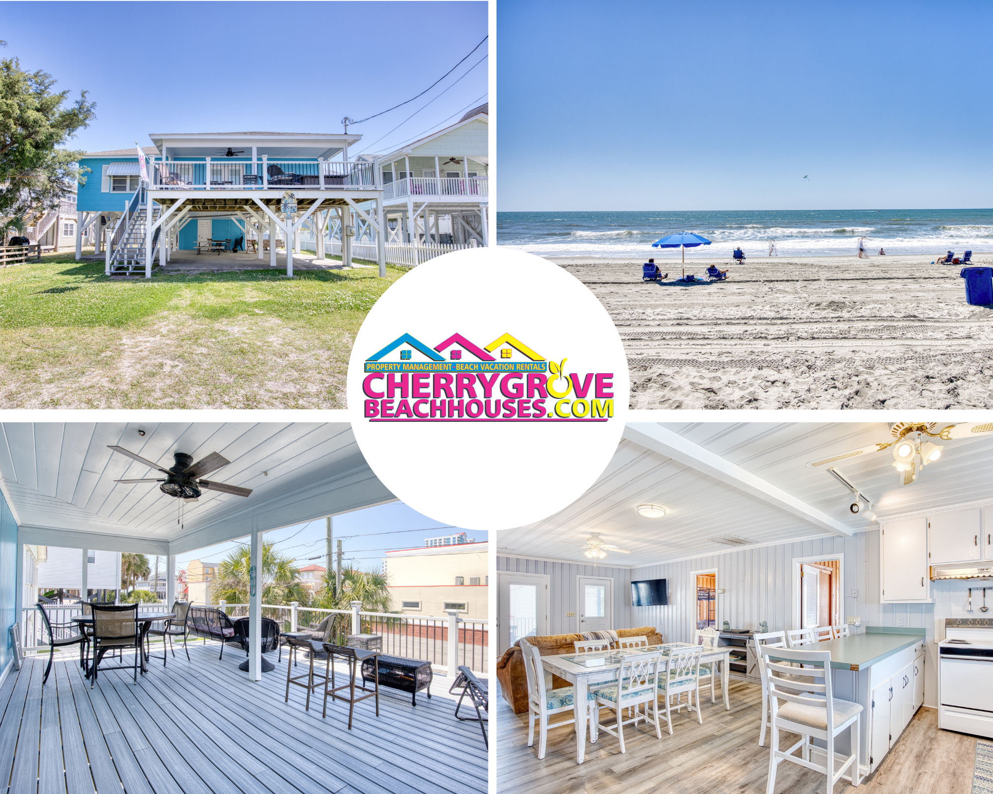 This 4 bedroom 3 bath house is located right in the heart of Cherry Grove Beach. This house sleeps 13 people and is less than one block away from the beach. Walking distance to grocery store, ice-cream shop, beach bars, restaurants, shopping, and most importantly THE BEACH! Very great and convenient location. Loaded Kitchen with all cookware/dishware you will need. Also has a washer and dryer. Linens are not included with the rental, but can be added. Free parking for the house.